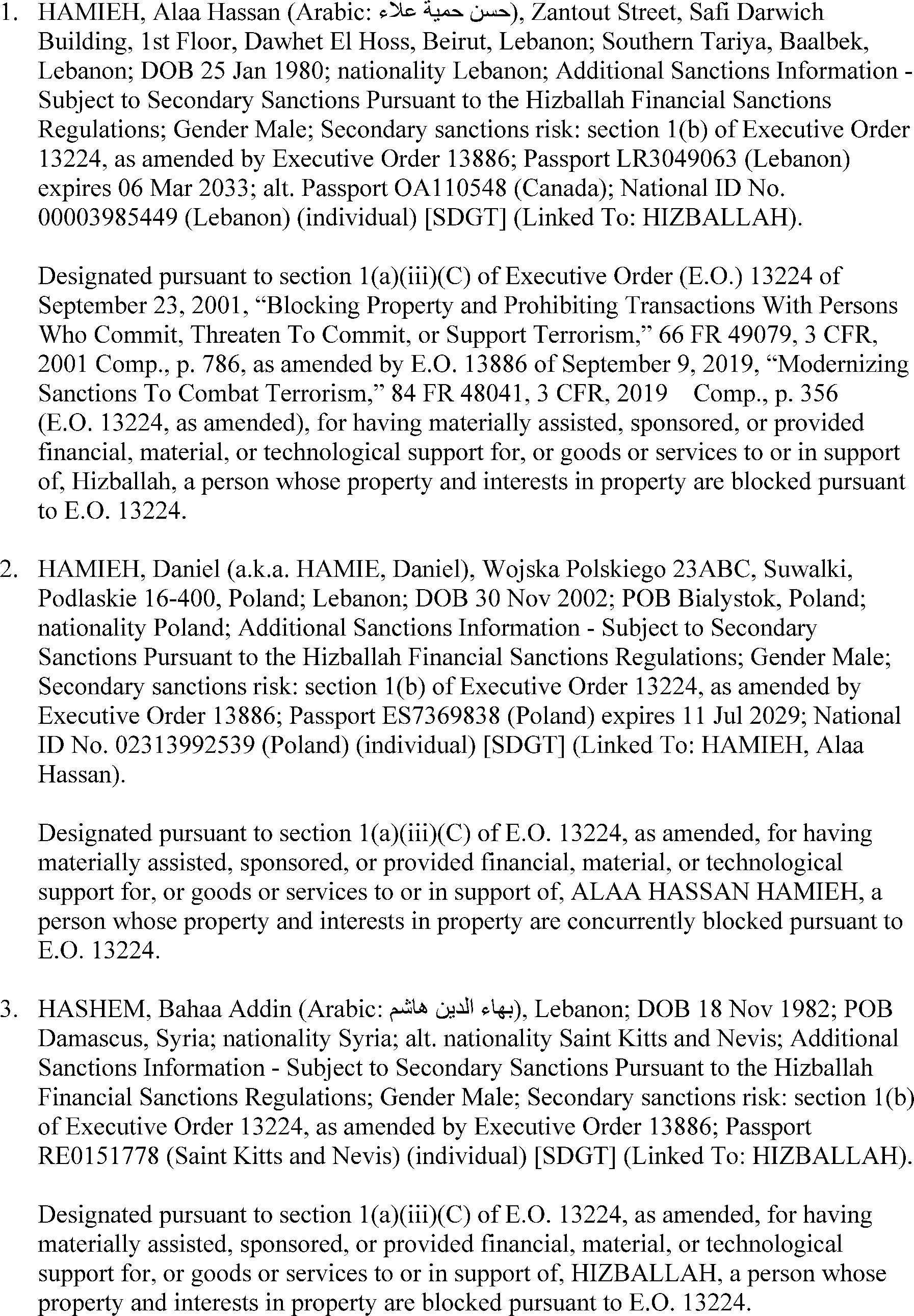The U.S. Department of the Treasury's Office of Foreign Assets Control (OFAC) is publishing the names of one or more persons