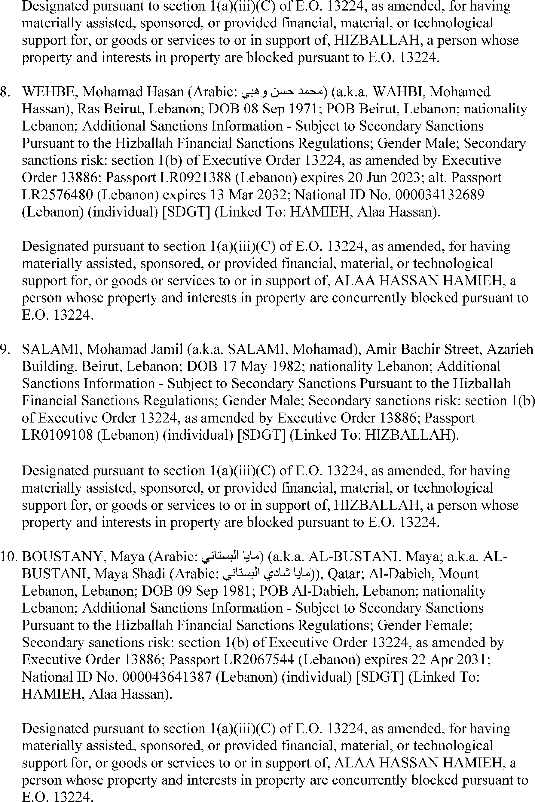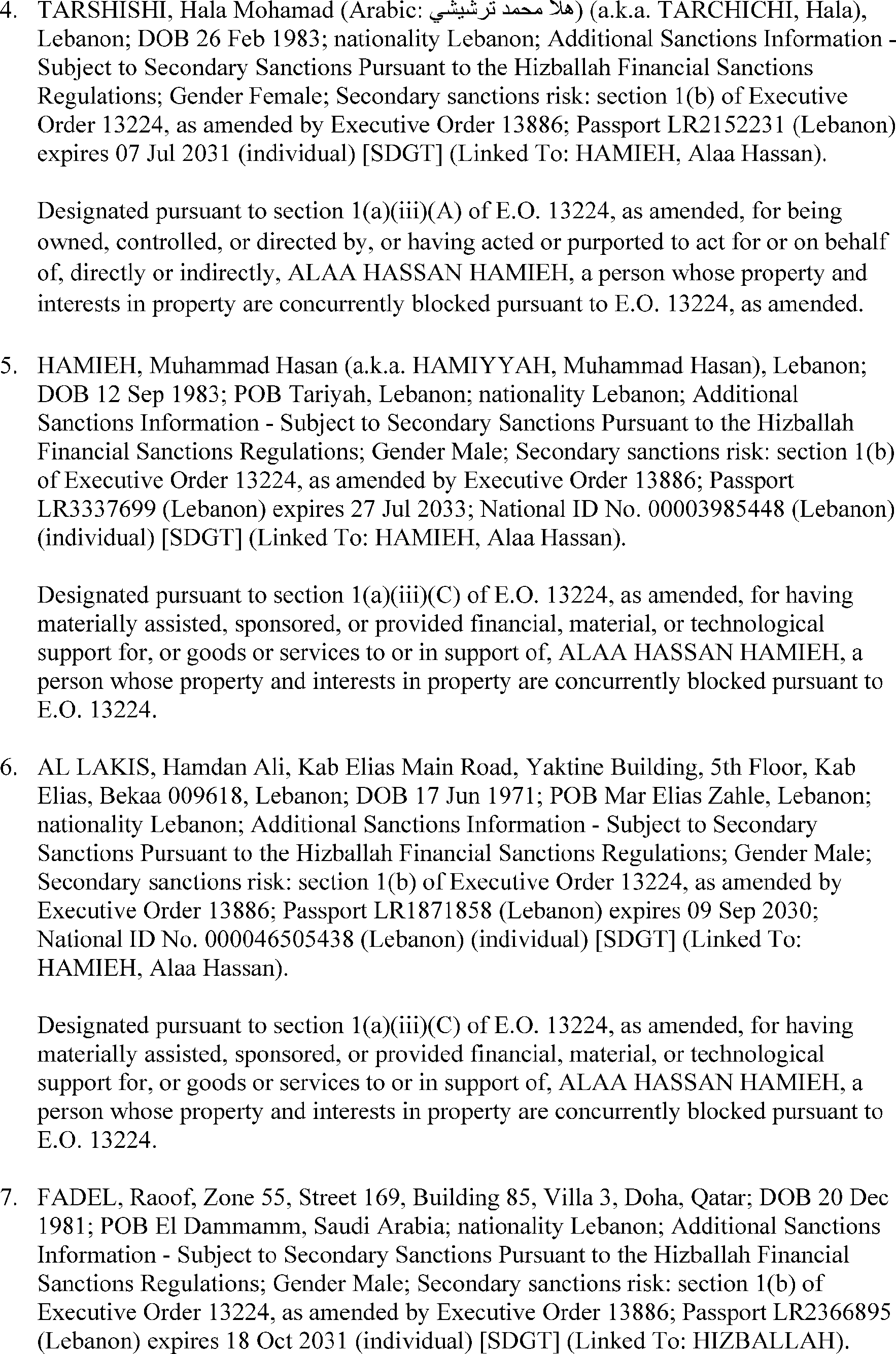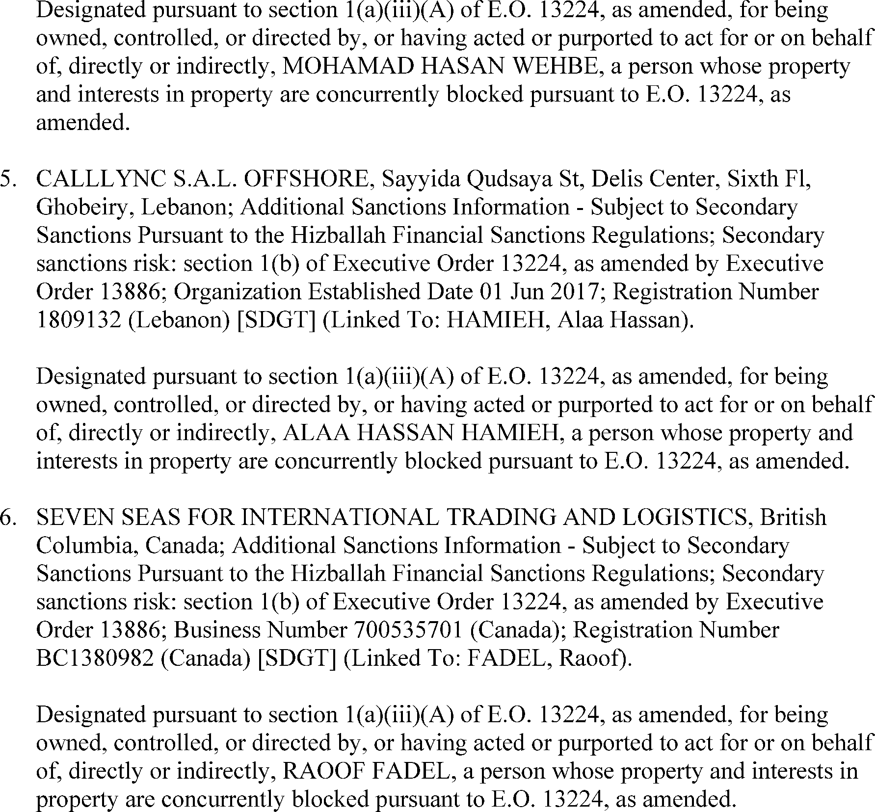 persons are blocked under the relevant sanctions authority listed below.