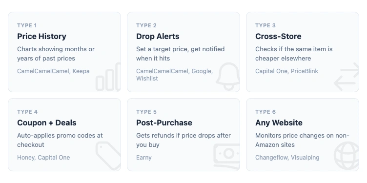 If you want more than just price tracking: Honey or Capital One Shopping. Both compare prices across retailers and apply coupons automatically.